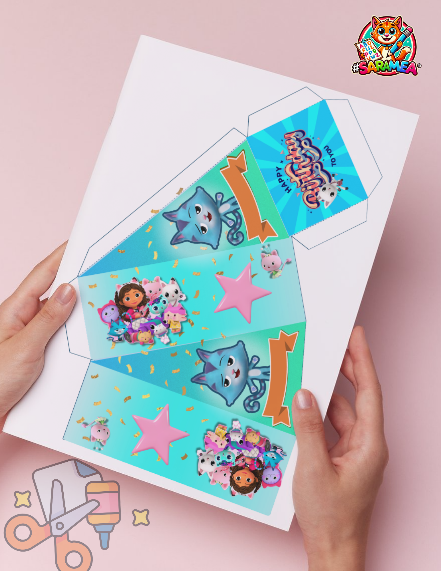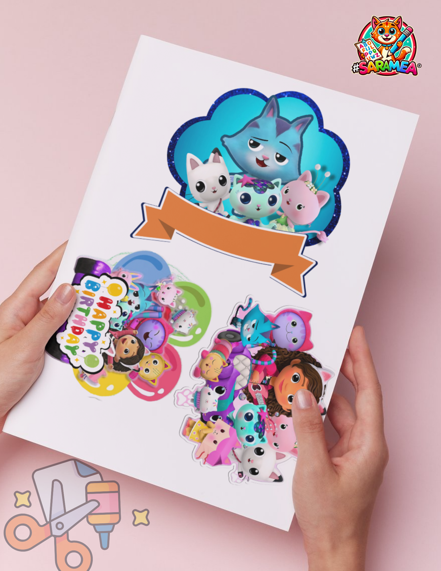 Acest pachet conține 5 șabloane tematice felii de tort editabile, inspirate din Stitch, Frozen, Patrula Cățelușilor, Spiderman și Gabby’s Dollhouse.